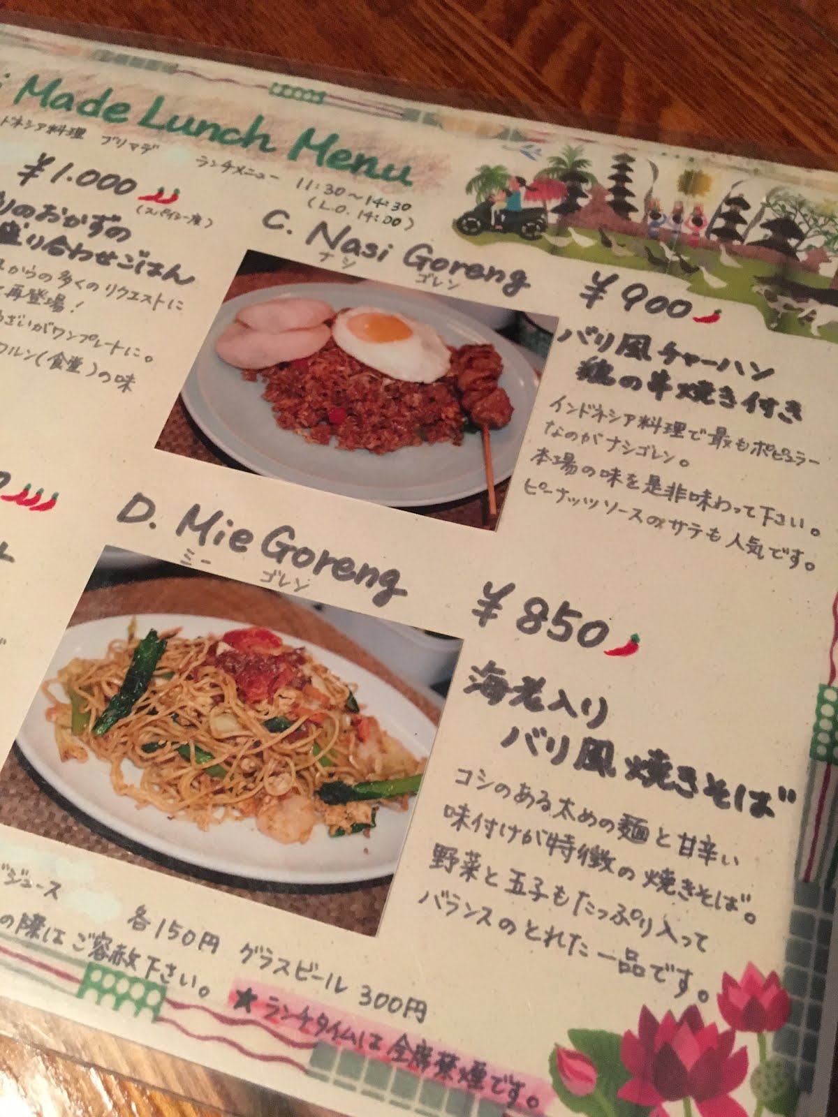 インドネシア料理は、この店に来るまで食べたことがなかった。インドネシアのチャーハンであるナシゴレンや、インドネシアの焼きそばであるミーゴレンが有名で、このお店のもランチとして両方を含めた4種類が提供されている。辛いのはそこまで得意ではないので、ミーゴレンとナシゴレンを往復しそうな予感がしている。